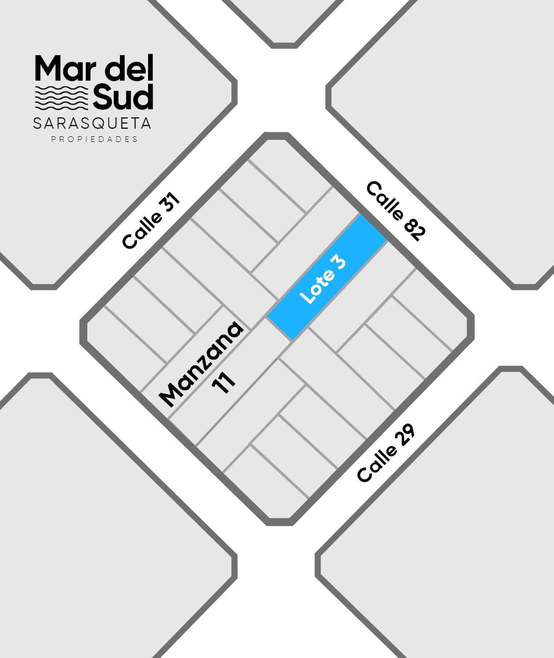 Lote número 3 en Mar del Sud sobre calle 82 entre las calles 29 y 33. Una superficie total de 528m2 con certificado de amojonamiento. El lote se encuentra ubicado a 6 cuadras de la Playa/Mar. Muy buén entorno con vegetación y viviendas, zona de alto desarrollo. Ideal Casa de vacaciones o Cabañas, no hay restricciones de estilos de construcción. Escritura e impuestos al día. Servicios de Luz Eléctrica y Alumbrado y servicios municipales de limpieza. Gran oportunidad por su valor. ¨Hacelo Tuyo¨, te lo hacemos posible.